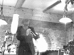 Wie es einer vernünftigen Werbung im Internet entsprechen sollte, entdeckte ich dank dieser über die von den Suchmaschnen registrierte Website – zu meiner übergroßen Freude – die Ausstellung Zauberhafte Klangmaschinen des IMA (Institut für Medienarchäologie) in der Kulturfabrik Hainburg. So wurde kurzerhand ein Ausflug in den Bereich maschinelle Klangerzeugung angesagt. Und wie es dem Schwung und Elan des Filmteams entsprach, wurde auch aus diesem Ausstellungsbesuch unverhofft eine Filmsequenz. Es ist natürlich absolut verführerisch, aus diesen sonst unzugänglichen Klangerzeugern, wie der dort ausgestellten Lichtorgel, allerlei psychedelische Klänge zu entlocken und diese noch mit einer eingefärbten Videosequenz aus dem Fernrohr auf dem Balkon der Kulturfabrik zu ergänzen. Auch die röchelnden Atemgeräusche aus dem Kehlkopfsimulator trugen zur illustration des Krankheitsbildes "Genre-Syndrom" bei.