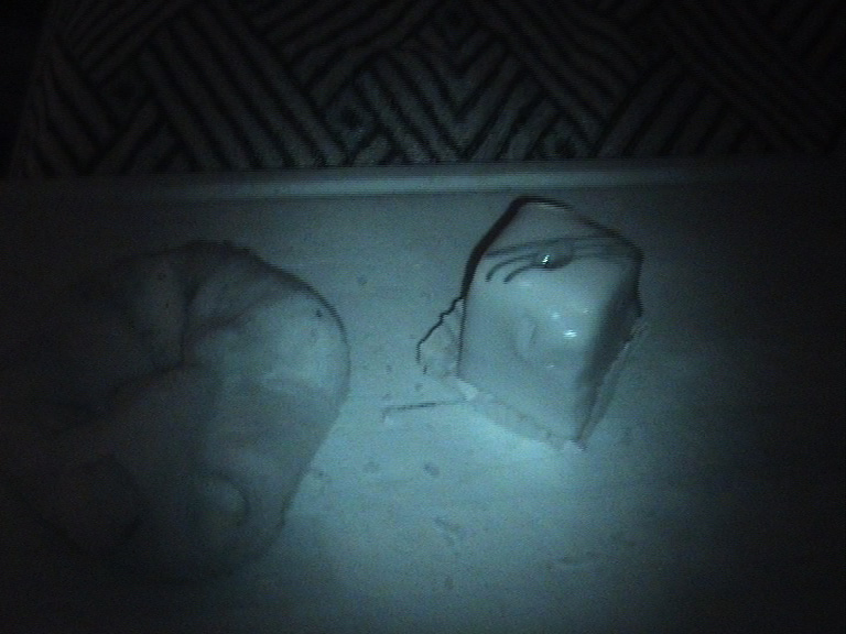 Scheiben schwarzen Toasts, die er aber netterweise im Mistkübel entsorgte.