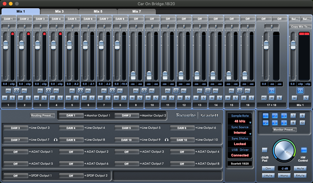 Hard-Kick / Vacuum Tube Processor VTP-1B > Dante So die Worte des Herstellers Christopher Curl. Ein handgemachter Röhrenvorverstärker moderner Bauart nach klassischem Vorbild. Da man hier sehr schnell mit dem Gain die Röhren übersteuern kann, ergab das für das «Hard-Kick» ein starke Verzerrung, ähnlich wie Ringo's Schlagzeug in den frühen Beatles-Aufnahmen. Synthetic Side Stick / Dizengoff Audio D4 > Dante https://dizengoffaudio.com/collections/rack-mount/products/dizengoff-audio-d4-mic-preamp-1 Eine ähnliche Angelegenheit wie beim Vacuum Tube Processor VTP-1B. Der Dizengoff Audio D4 hat die REDD.51 Röhrenkonsole zum Vorbild. Dieses Pult wurde in 1964 bis 1968 von EMI im Abbey Road Studio 2 eingesetzt, um die Beatles and Pink Floyd aufzuzeichnen. Das D4 ist eine in Chicago hergestellte «erweiterte» Fassung des Kanalzugs, da das D4 mehr Einstellmöglichkeiten als das Orignal hat. Der Dizengoff kann sehr klar sein, aber auch gut verzerren – aber nicht heftig verzerren. Der «Synthetic Side Stick» wurde mit dem D4 vor dem Dante angehoben. Sharp Hi-Hat / Dunlop Uni-Vibe / Revive Audio Modified Presonus MP20 > Dante Kaum hörbar auf «Dreams» auf dem Fleetwood Mac «Rumors» Album, lauft das Hi-Hat durch einen Phaser. Machen wir doch auch so. Also ging das «Sharp Hi-Hat» durch einen «Dunlop Uni-Vibe». Das Uni-Vibe ist eigentlich ein Bodeneffektgerät für Elektrogitarre. Der japanische Hersteller Shin-Ei hatte in den Sechzigerjahren versucht, den Lesliesound in eine Effektbox zu quetschen. Nicht ein jeder wollte oder konnte ein Lesiekabinett herumschleifen. Die Firma wurde zu Univox bis dann die Rechte an Dunlop verkauft wurden. Das Dunlop Uni-Vibe hat zwei Einstellungen, grün für Chorus und rot für Vibrato. In diesem Fall wurde grün angewählt. Auch hier gab es relativ wenig Pegel. Deshalb wurde der Dunlop-Klang mit einem Revive Audio Modified Presonus MP20 angehoben. Revive Audio ist eine amerikanische Firma, ca. 20 km von Nashville entfernt, die sich darauf spezialisiert hat, bereits bestehender Audiotechnik einen Upgrade zu verleihen, indem interne Komponenten durch bessere Komponenten ausgewechselt werden und die Unit neu eingemessen wird. So geschehen mit dem Presonus MP20. Basierend auf die angehobene Qualität des MP20 wurde das Hi-Hat verstärkt, bevor es ins Dante ging. |
