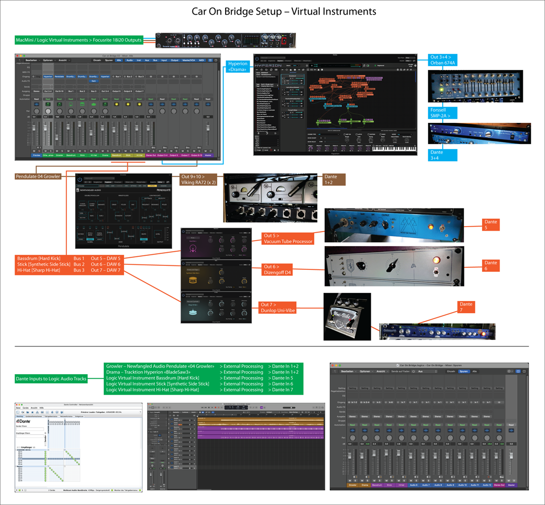 Neufangled Audio – Pendulate ![]() Neufangled Audios Pendulate wird derzeit – FREE – von Eventide Audio als «Chaotic Synth» vertrieben. Eventide gibt es ja schon Ewigkeiten lang und hat mit seiner Elektronik die Rock- und Popmusik sehr bereichert. Natürlich auch den Bereich der Minimal-Music, denn der «Ha-Ha-Ha»-Loop in Laurie Anderson's «O Superman» stammt aus einem der ersten Eventide Module, dem Eventide H910. Inzwischen hat Eventide jede Menge Hardware auf dem Markt (auch Gebrauchtmarkt) und hatte irgendwann damit begonnen, Plugins zu entwickeln, nicht nur von der ursprünglichen Hardware, auch nicht Hardware-Orientiertes. Pendulate is a chaotic mono-synth that uses a brand new double-pendulum-oscillator to create previously unheard sounds — biting basses, searing leads, and gritty textures. It can smoothly fade from a sine wave to total chaos, with an expanse of territory to explore in between. Soweit der Beschrieb des Anbieters. Und soweit ist das richtig auffasse, basiert die Klangerzeugung auf den Buchla 259 Complex Waveform Generator. Damit hat es hier einen weiteren Querverweis. Hier taucht der Name eines ganz großen Synthesizer-Bauers auf: Don Buchla, der 2016 verstarb. Eher bekannt ist Bob Moog, dessen kommerzieller Erfolg Buchla in den Hintergrund drängte. Ich würde meinen, sehr zu Unrecht, die Buchla-Module waren gleichermaßen Innovativ, aber vermutlich schwieriger zu handhaben. Auch hier hatte ich mir nicht die Mühe gegeben, in die Tiefe der Programmierung zu tauchen. Ähnlich wie am Hyperion werde ich hoffentlich einen Tag finden, ein «Neue Klänge braucht das Land» in Szene zu setzen. An einem einzelnen Tag kann man dabei ganz wundersame Labyrinthe erkunden. Und die Pfade als Preset abspeichern. In diesem Fall entschied ich mich für einen schnarrenden Baßsound. Apple Logic als Sequencer ![]() ![]() Auf mehreren Spuren wurden die Synthesizer- und Drumspuren gelegt und über die Einzelausgänge eines Focusrite 18i20 ausgegeben, als Stereospuren oder Einzelspuren. Dazu diente das Scarlett Mixcontrol für das Einordnen der Ausgänge. Nachbearbeitung analog, danach über Dante auf einem zweiten Computer 24 Bit / 192 kHz aufgenommen. |