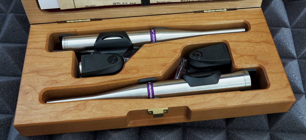 Santanterbass Ein Mitbringsel aus dem Flash Music in Wien. Sechs richtig metallene Saiten, von denen eine während der Aufnahmen wegen Überstimmung nach Valhalla ging. Selten gebraucht. Hier gesellt sich der Santander zur Taiko-Struktur und versieht diese mit einer funkigen (Einzel-) Note. Und ein wenig Elektrogitarre hatte sich auch noch eingeschlichen. Der Perkussionsweg Was bietet sich an, Perkussion recht aufzunehmen? Ich habe kein einziges SM57, da greife ich zu allerlei Exoten. Mit der nötigen Vorsicht kann man das Paar Earthworks QTC50mp hängen, die eignen sich aber eher für zarte Klänge und zwischen einem Chor und Tomtoms hat es leichte Pegelunterschiede. Sehr gut finde ich die sE Electronics sE4, ganz besonders für Snare, und diese fanden hier Verwendung. Damit waren die Tomtoms abgedeckt. Etwas Equalizer dazu und etwas Hall und die Musik hat ihren Anteil an Wucht erhalten. Aber doch hat da noch etwas gefehlt, also fiel mein Blick auf die aus Varanasi stammenden indischen Congas. Natürlich nicht zu vergleichen mit den üblichen kubanischen Congas, die Varanasicongas sind andere Seelen, die – man sieht und hört es – aus dem indischen Kulturkreis stammen. Gerade die hohe Conga war mir lange ein Rätsel, wie könnte ich diese richtig anwenden? Hier ergab sich eine Lösung: Mit Sticks gespielt, erscheint sie im japanischen Gewand und läßt sich gut in die Taiko-Struktur einfügen. Wenn man die metallenen Spannelemente dieser Congas mit Sticks spielt, wie es oft an den Seitenflächen von Timbales üblich ist, dann erscheint der Klang sehr taikohaft, denn oft werden die Taiko-Trommeln an ihren hölzernen Wänden gespielt. |