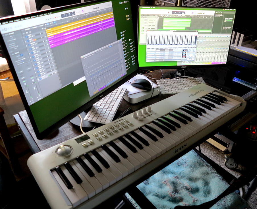Tracktion – Hyperion ![]() Efficient processing enables up to 16 layers of MPE capable complex sound patches which can be affected in unison by macro controls, but which can also send modulation data and aux buss audio between each other. https://www.tracktion.com/products/hyperion Das ist doch Ein-Mann-Ein-Wort. Hier spalten sich schon die Bereiche «Sound-Designer», «Produzent», «Musiker», «Komponist» – lassen wir hier die Liste auslaufen. Es hat genug Preset-Instrumente, die zum Teil gute Klangbilder vorweisen, diese sogar in Hülle und Fülle. Blicke ich ein bis drei Jahrzehnte zurück, so ist sehr oft festzustellen, daß die Presets der damaligen Synthesizer nicht unbedingt allzu innovativ waren. Erst, wenn man selbst einmal an die Weltraumwurst ging und diese neu Programmierte, da kamen erst die interessanten Klänge hervor. Die Synths hatten jede Menge Potential, das singende und klingende Bäumchen mußte man aber selbst pflanzen. Zugegeben, ich hatte mich nicht lange mit den Klängen des Hyperion durchgesteppt, ich hatte einen bestimmten Klang im Hinterkopf und diesen traf ich sehr schnell an. Dennoch: Der Hyperion ist ein Klangerzeuger, der dazu auffordert, Zeit in ihm zu investieren, das Manual zu studieren und dann systematisch seine Klangwelten zu erforschen. Das wird vermutlich viel Zeit brauchen. Man beachte: Es ist auch möglich, Samples in diversen Formaten einzulesen und diese in der hochkomplexen Matrix zu integrieren. Apple – Virtual Drums So mancher Hardware-Synthesizer bietet jede Menge Drumsounds an. Desgleichen auch die diversen Digital Audio Workstations. Eigentlich suchte ich zunächst nur nach einem Taktgeber. In erster Linie eine Bassdrum mit viel Wucht. «Hard-Kick» aus der Logic-Trommelmaschine klang ganz gut. Vielleicht wäre es angebracht gewesen, einen Baßdrumsound aus dem Roland SPD-8 Total Percussion Pad aus dem Jahre 1991 anzusteuern, aber das war mir doch zuviel Hardware und Neuverkabelung, irgendwo muß man sich ja doch zurücklehnen ... aber nicht aufgeschoben, denn das erinnert mich daran, daß da ein paar wuchtige Sounds lagern. Was nach vielen Jahren neu zu erkunden ist. Irgendwie zwickt's mich, den Drummulator verkauft zu haben. Dabei hatte ich mir sogar persönlich im Laden beim Sam Ash in New York ein MIDI-Retrofit Kit besorgt. Der Drummulator von E-MU hatte knackige und wuchtige Klänge in seinen Chips. Aber irgendwie hatte ich keine Verwendung mehr für Drum-Machines und entließ sie wieder in die freie Wildbahn. Eigentlich sollte man alles behalten, was man hat. Das Lebensende wird ja eh alles wegnehmen. Bis dahin sollte man sein Spielzeugparadies zu schätzen wissen. Das zweite Instrument aus dem Drumset war der «Synthetic Side Stick». Es scheint eine Kunst zu sein, einen schönen, hölzernen Sidestick-Sound zu kreieren. Etliche Jazz- und Motown Platten können davon zeugen. Der Klang hier kam in die Röhrensättigung. Und ein «Sharp Hi-Hat» aus der gleichen Schmiede. Etwas unscheinbar Interessantes gefällig? Siehe weiter unten ... digitales Hi-Hat über Dunlop Univibe. Es stehen einem jeden, damit auch mir, die Erlaubnis zur Verfügung, Änderungen zu machen. So klar ich die Strukturen aufzeichne, plopp, plopp ergeben sich die Modifikationen. Die Matrix verändert sich und die Signalwege müssen sich anpassen. So wurde der Presonus Preamp dann mit dem Grace Design ersetzt. Aber am Basic Setup war es doch nicht viel. Es ist halt unmöglich einen Arbeitsfluß wirklich festzuhalten. Flüsse kann man nicht wirklich bändigen. |